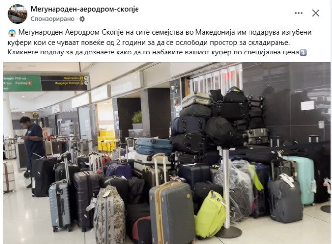 ТАВ Македонија“, подружница на „ТАВ аеродроми“, ја информира и ја предупредува јавноста дека има лажни страници и профили на социјалните мрежи, на кои наводно се продава изгубен багаж на Меѓународниот аеродром „Скопје“.
