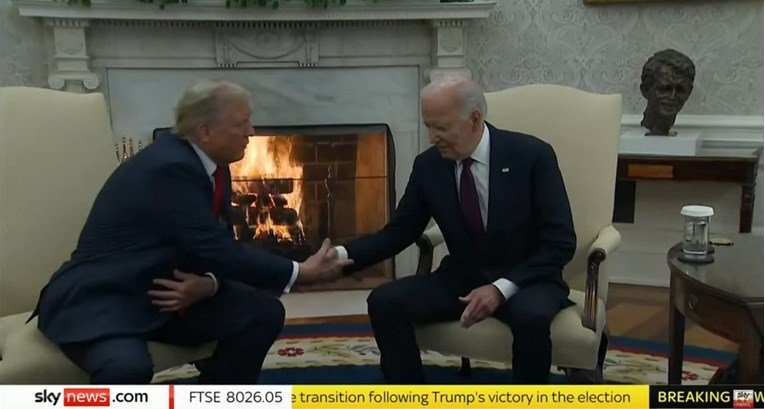 Тие се среќаваат во Овалната соба. Трамп му рече на Бајден дека политиката е тешка. Исто така, му се заблагодари за непречената транзиција, а Бајден одговори: „Добредојдовте“.