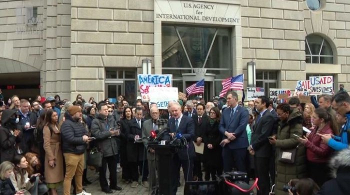 На протестот се придружија и неколку членови на Конгресот како сенаторите од Мериленд Крис Ван Холен и Џејми Раскин кои споделуваа информации за тоа што се случува со УСАИД. Тие изјавија дека влезот во седиштето бил затворен и заграден со жолта лента, и дека биле одземени компјутерските сервери додека веб-страницата на УСАИД е исклучена, а исплатите за некои договорни изведувачи запрени.