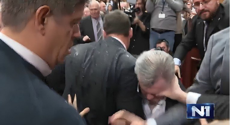 Во српскиот парламент дошло до физичка пресметка кога опозиционерите првин кренале транспаренти по усвојувањето на дневниот ред, а потоа се обиделе физички да го спречат почетокот на расправата кога пристигнале владините членови.