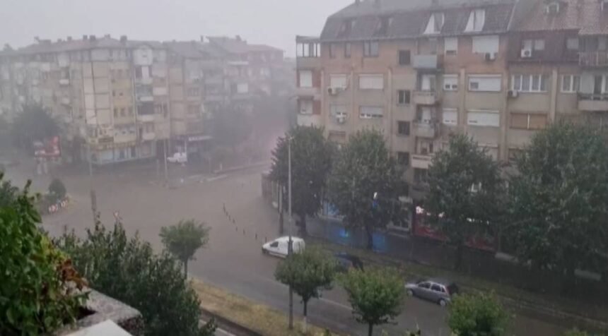 Силниот дожд што го зафати попдалнево Тетово, поплави улици и дворови во градот и околината.