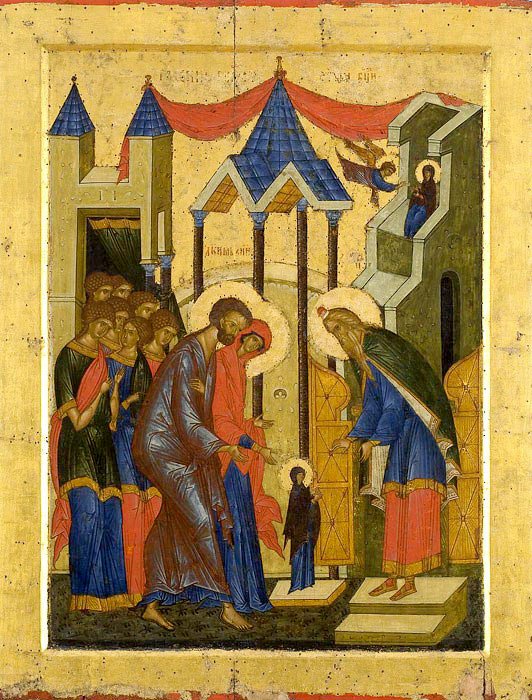 Кога Пресвета Дева Марија наполни три години од раѓањето, нејзините свети родители Јоаким и Ана ја доведоа од Назарет во Јерусалим, за да ја предадат, според своето ветување, на служба на Бога. Од Назарет до Јерусалим има три дена пат, но одеа на богоугодно дело и патот не им беше тежок. Се собраа и мнозина роднини на Јоаким и Ана за да земат учество во таа свеченост, во којашто невидливо учествуваа и Ангелите Божји. Напред одеа девиците со запалени свеќи во рацете, потоа Пресветата Дева, водена од едната страна од Јоаким, а од другата од Ана. Беше украсена со царска благолепна облека и со украси, како што ѝ прилега на царска ќерка, на невеста Божја. Зад нив одеа многубројни роднини и пријатели, сите со запалени свеќи. Пред храмот имаше петнаесет скалила. Родителите ја кренаа Девата на првото скалило, а таа тогаш сама брзо се искачи на врвот, каде што ја дочека првосвештеникот Захарија, таткото на свети Јован Претеча. Кога првосвештеникот ја зеде за рака, ја воведе не само во храмот туку и во Светињата на Светињите, каде што никој никогаш не влегуваше, освен архијерејот. Свети Теофилакт Охридски вели дека Захарија бил „вон себе и обземен од Бога“ кога ја воведувал Дева во најсветото место во храмот, зад втората завеса, поинаку не би можела да се објасни оваа постапка. Во онаа прилика родителите на Дева Марија според Законот, Му принесоа жртви на Бога примија благослов од свештеникот и се вратија дома, а Пресветата Дева остана при храмот. Таа пребиваше во храмот цели девет години. Родителите ја посетуваа често додека беа живи, особено блажената Ана. А кога нејзините родители беа повикани да се претстават кај Бога, Пресветата Дева остана сираче и не сакаше до нејзина смртта да се оддалечува од храмот ниту да стапи во брак. Бидејќи тоа беше спротивно на Законот и на обичајот во Израилот, кога наврши дванаесет години му ја дадоа на Јосиф, нејзиниот роднина од Назарет, за во вид на свршеница да живее со него во девственост и привидно да го задоволи Законот. Зашто во тоа време не се знаеше во Израилот девојките да се заветуваат на девственост до крајот на животот. Пресвета Дева Марија беше прва таква доживотно заветувана девојка и неа потоа ја следеа незнајно мнозинство девственици и девственички.