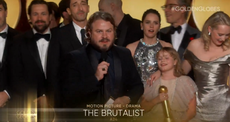 Нискобуџетната епска драма The Brutalist, која ја раскажува приказната за архитект кој го преживеал холокаустот, освои три награди: најдобар филм во категоријата драма, награда за најдобар актер (Адријан Броди) и награда за најдобра режија (Брејди Корбет). На крајот од својот говор, Корбет му оддаде почит на режисерот Џеф Баена, кој почина оваа недела.